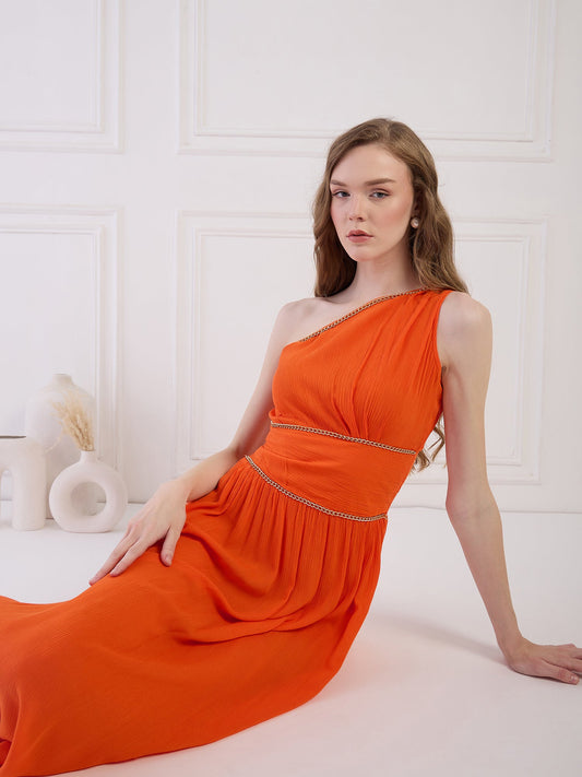 Flawless Women One Shoulder Fit and Flare Party Dress | KALPENI