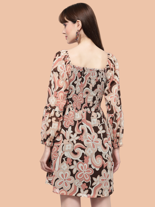 Flawless Floral Print Mini Dress for Women | PIXIMINI