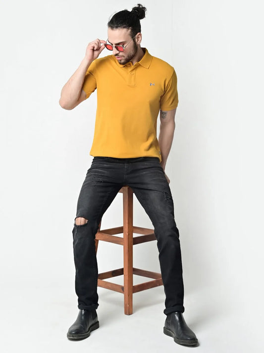 Flawless Men Organic Trio Mustard Polo T-Shirt