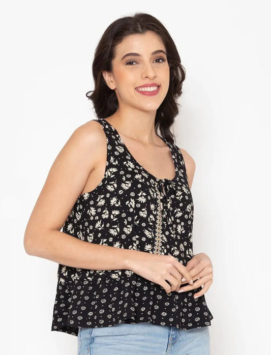 Flawless Women Shirt Style in Black Floral Top