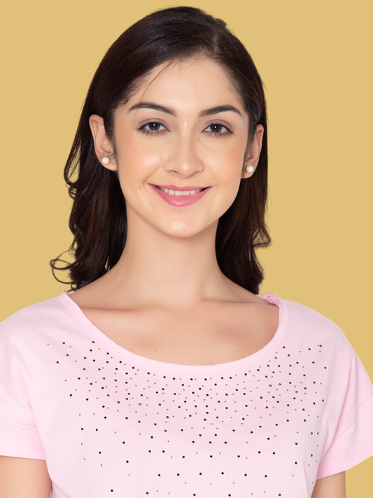 Flawless Women Pink Embellished Cotton Top