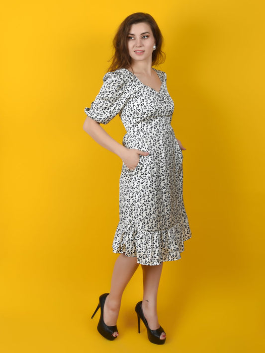 Flawless Women White Black Print Midi Dress | SANDRA